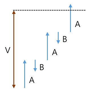 수식을 정리하면, (V-B) / (A-B)일 동안 올라가게 된다.
